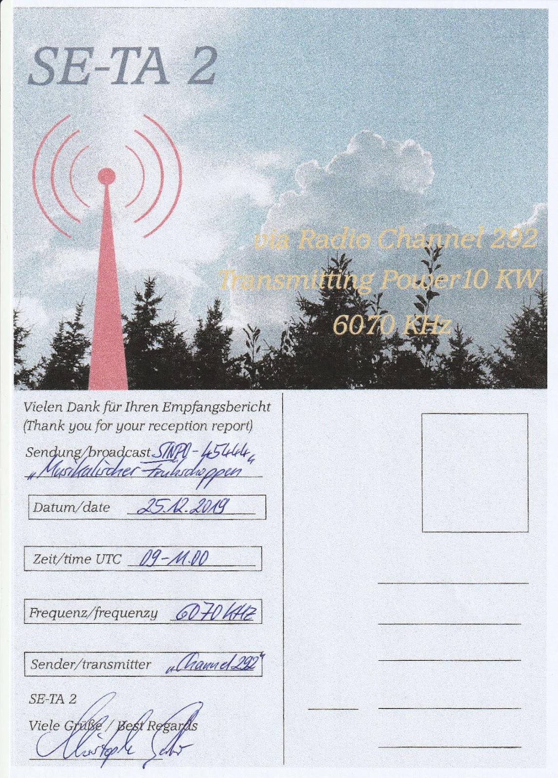 Am 01.01.2020 um 10:31 schrieb Tom DF5JL: > ...die nicht in der Lage sind, "Rissäptschön Ripportts" zu bestätigen. > Der Server, wir wissen schon. Warum dann solch eine Veranstaltung? > Allein für's Ego? > Wenn die Ununterscheidbarkeit einer Station allein in radegebrochenem > Englisch besteht, ist es um die Frequenz fast zu schade. Ich weiß nun nicht, wie es bei "SE-TA 2" klang, jedenfalls steht auf deren QSL-Karte augenscheinlich etwas von: "frequenzy" Als "typo" nicht weiter schlimm, aber auf "tausenden Vordrucken"... ;-) https://www.bclnews.it/2020/01/03/qsl-radio-se-ta2/ https://www.bclnews.it/wp-content/uploads/2020/01/RadioSE-TA2191225Pavanello.jpg "SE-TA" ?? [/Search for Extraterrestrial Artifacts] /https://de.wikipedia.org/wiki/Search_for_Extraterrestrial_Intelligence#SETA Oder (einstmals) ein Freebander bei den "SierraEcho" und "TangoAlfa"-Gruppen ? Und wer unterschreibt da? https://1.bp.blogspot.com/-Cppph1pkabw/Xgj8MPvF_WI/AAAAAAAAE00/xkJglQFMTN8Uh8dexzQO5LGGvCGkH6NGACLcBGAsYHQ/s1600/SE-TA%2B2_0006.jpg Ein "Christoph ....." ? Naja, man muss nicht immer alles wissen.... ;-) roger